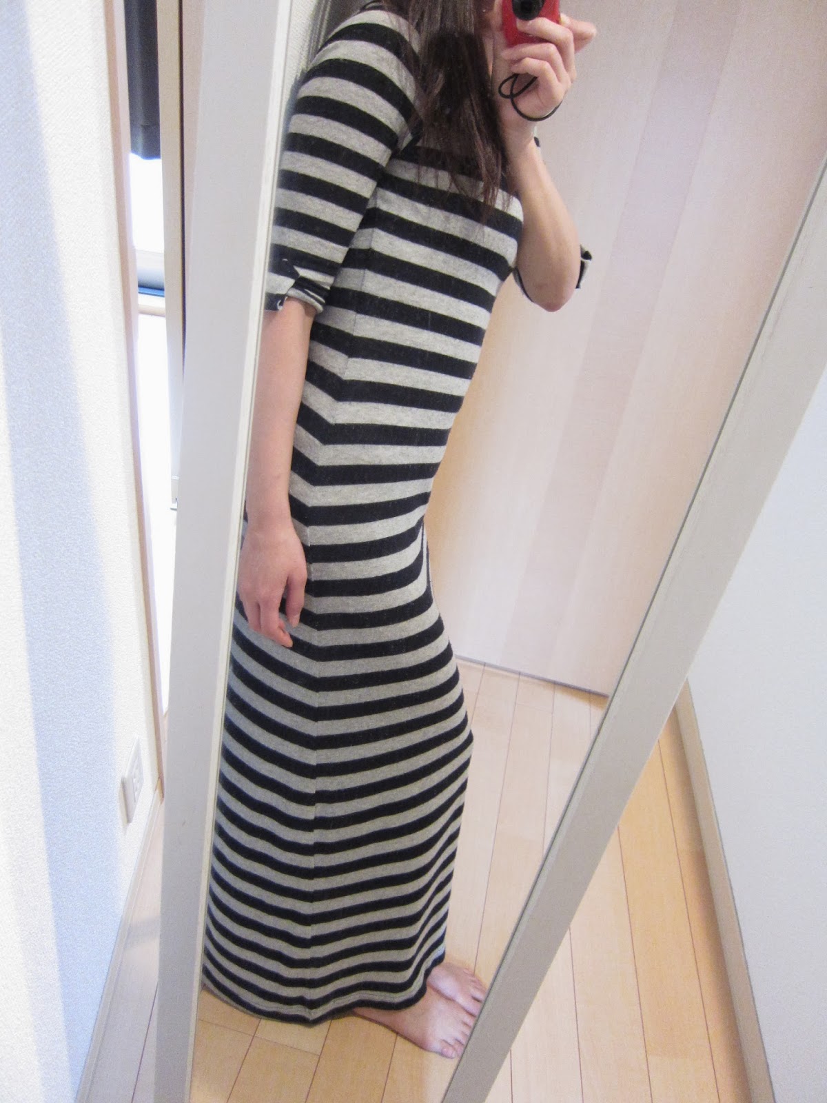 I'm wearing BLACK and GRAY border long dress by Bershka.